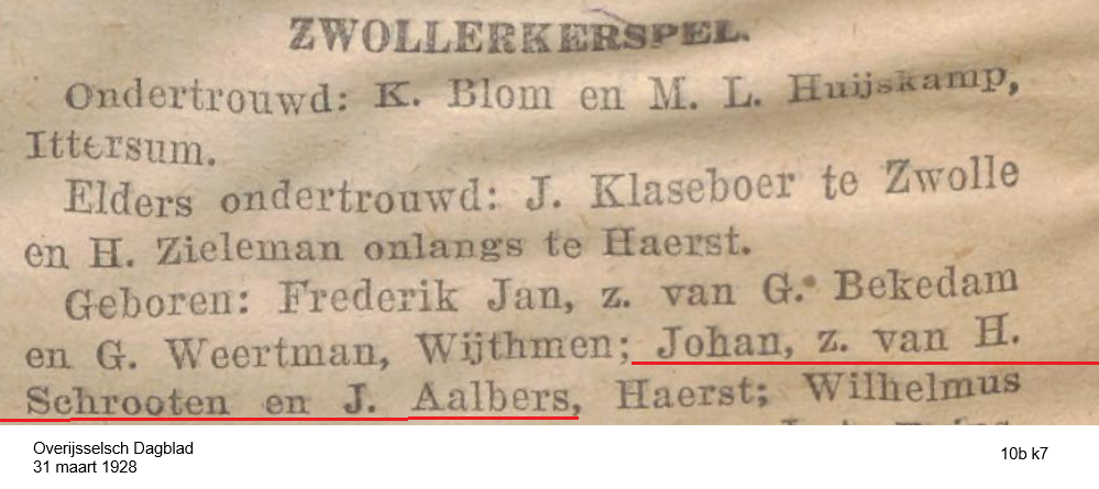 | 7 okt 1952 | Provinciale Overijsselsche en Zwolsche Courant | Familiebericht | Aalbers, Kers |