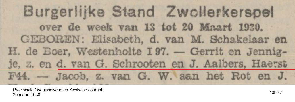 | 14 nov 1956 | Overijsselsch Dagblad | Familiebericht | Fien, Jantje |
