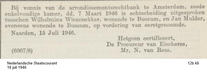 | do 18 jul 1946 | Nederlandsche Staatscourant | Advertentie (adm) | Mulder, Jan |