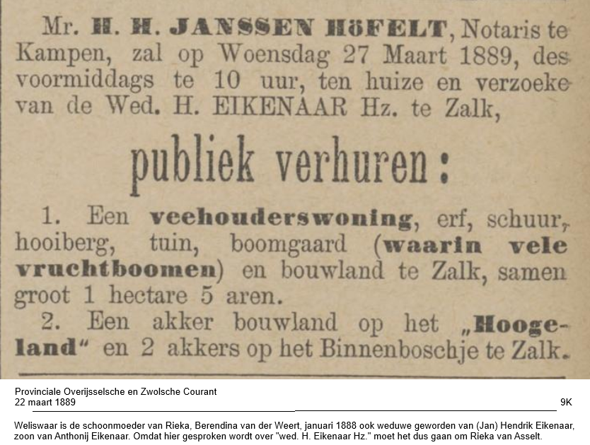 | di 12 feb 1822 | Overijsselsche Courant | Advertentie (adm) | Dijk, Hendrik Berends van |