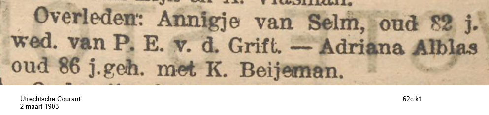 | ma 03 jun 1822 | Utrechtse Courant | Familiebericht | Bessem, Elizabeth |